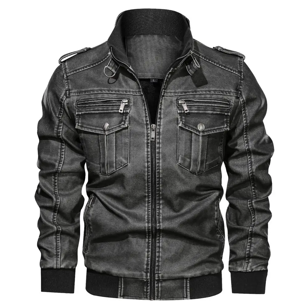 Осенне-зимняя новая мужская кожаная куртка, винтажная мотоциклетная...