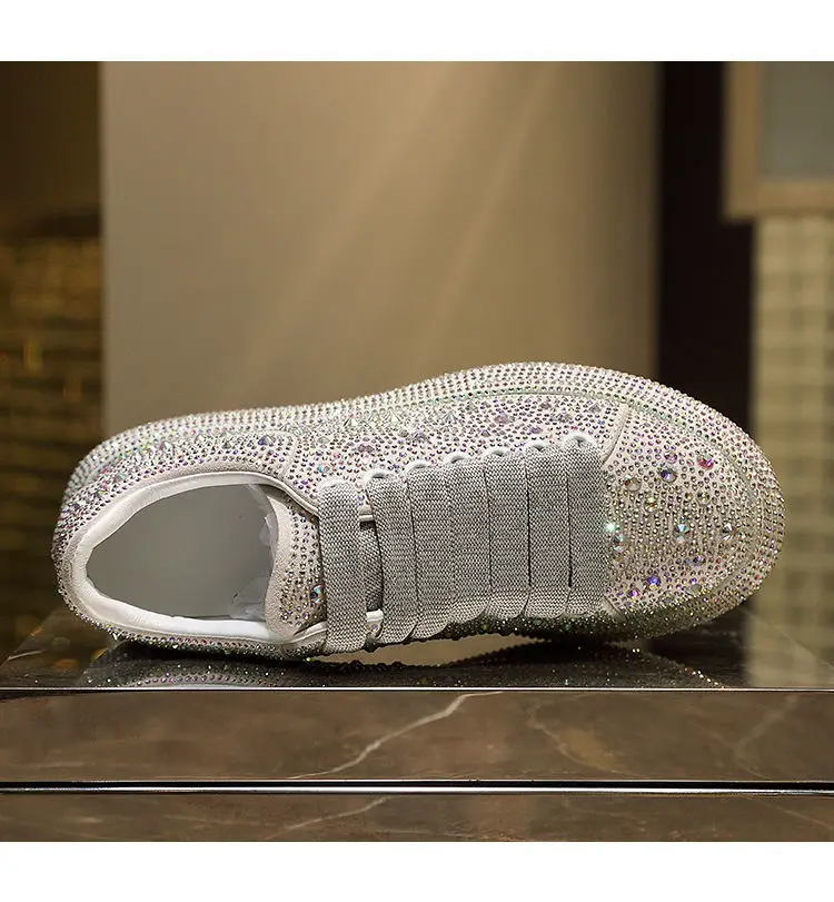 Европейская станция, новинка 2020, обувь на платформе со стразами для ранней осени, женские спортивные белые блестящие туфли, стразы