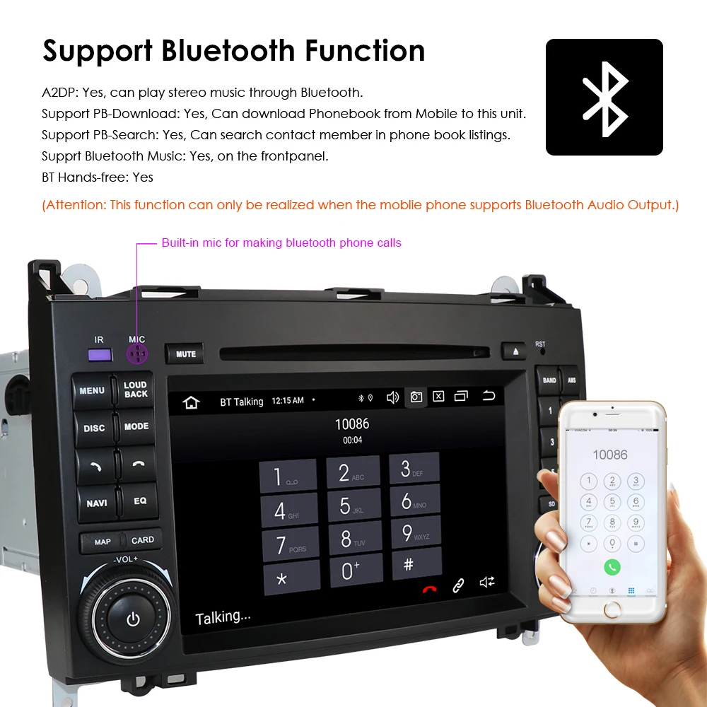 HD 1024*600 Android 10 мультимедийный сенсорный телефон для mercede...