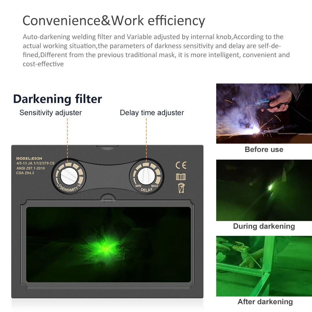Электросварочная маска для сварочного аппарата, с автоматическим затемнением и регулируемым диапазоном 49-13 миг, ММА