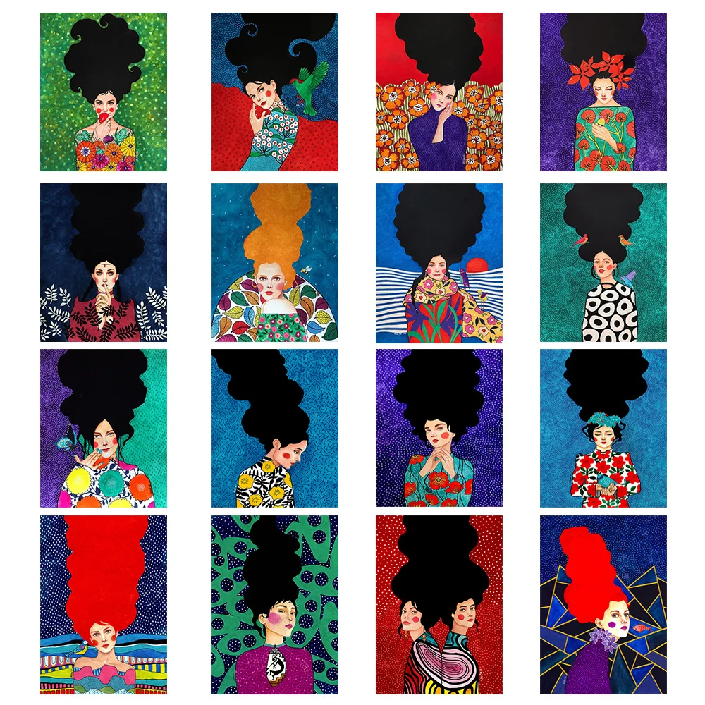 Абстрактная девушка волосы цветок птица стена искусство холст живоп...