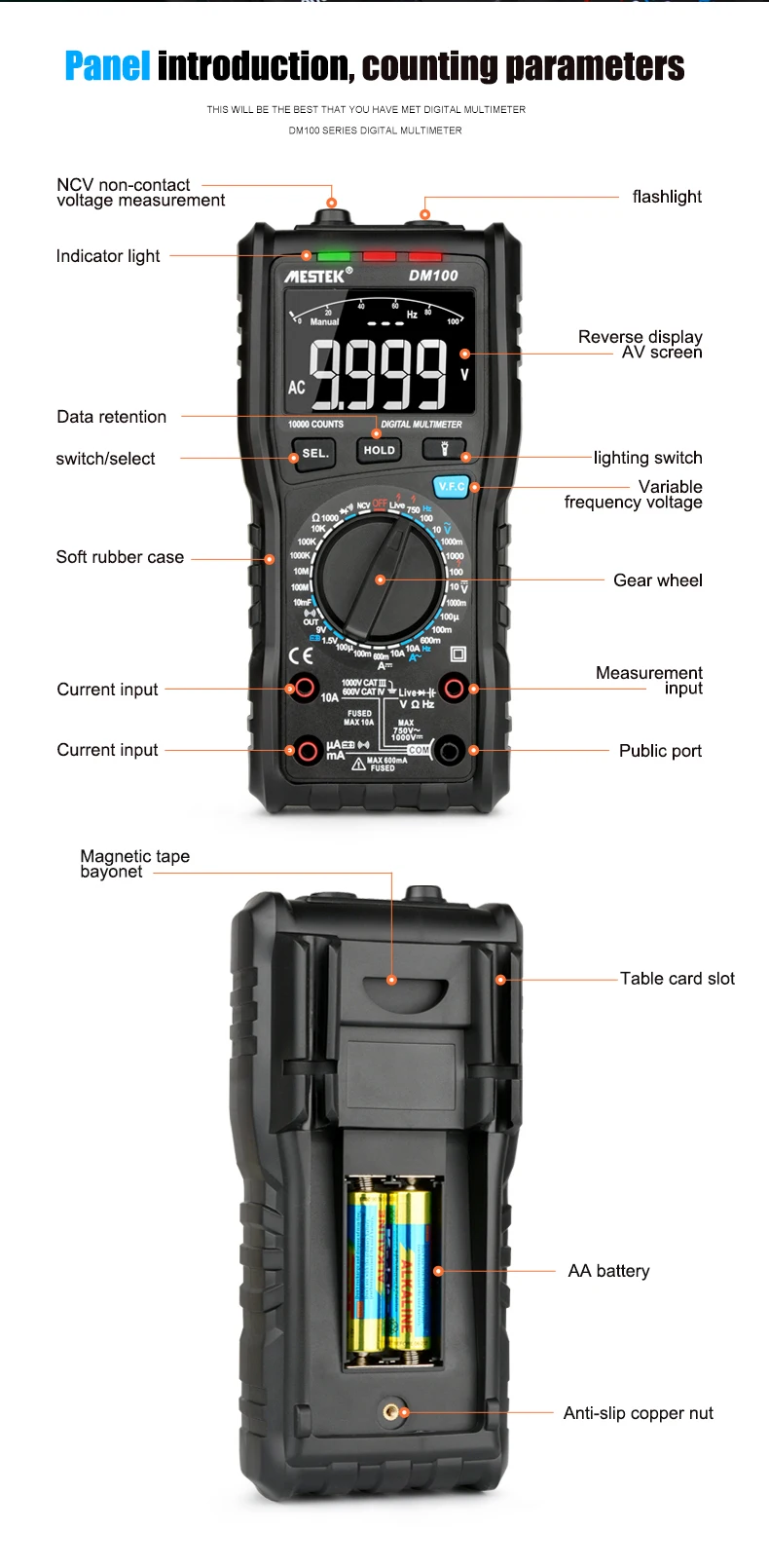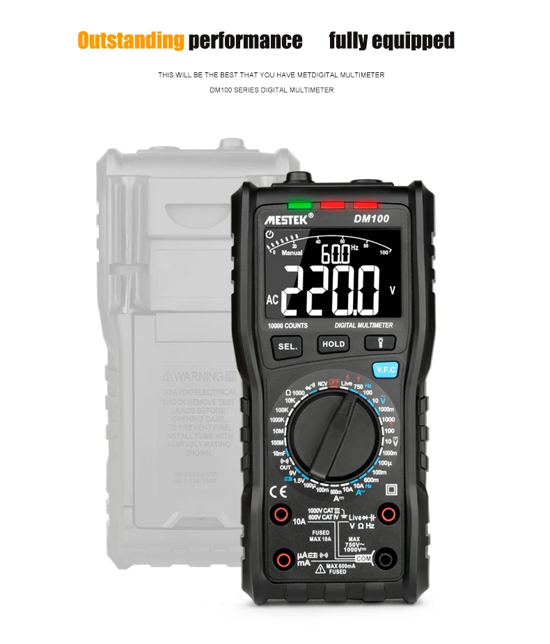 Быстро растворяющаяся профессиональная керамическая трубка Предохранителя встроена в шестерню 600мА/10А. После того, как предохранитель выдувается, DM100 подскажет предохранитель на экране и звуковой сигнал, Чтобы пользователь мог интуитивно найти статус текущего файла мультиметра и улучшить его Тест на техническое обслуживание. Эффективность работы.