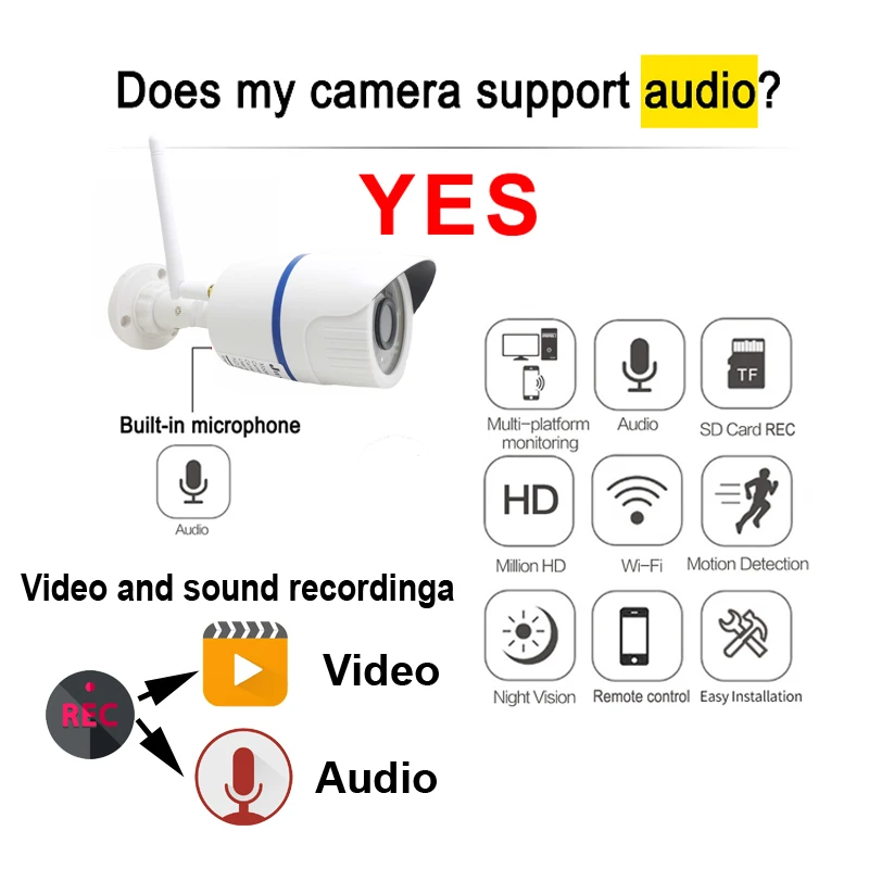 Поддержка записи видео и звука через карту Micro SD или компьютер, вы можете удаленно воспроизводить видео и звук (история) через мобильное приложение.