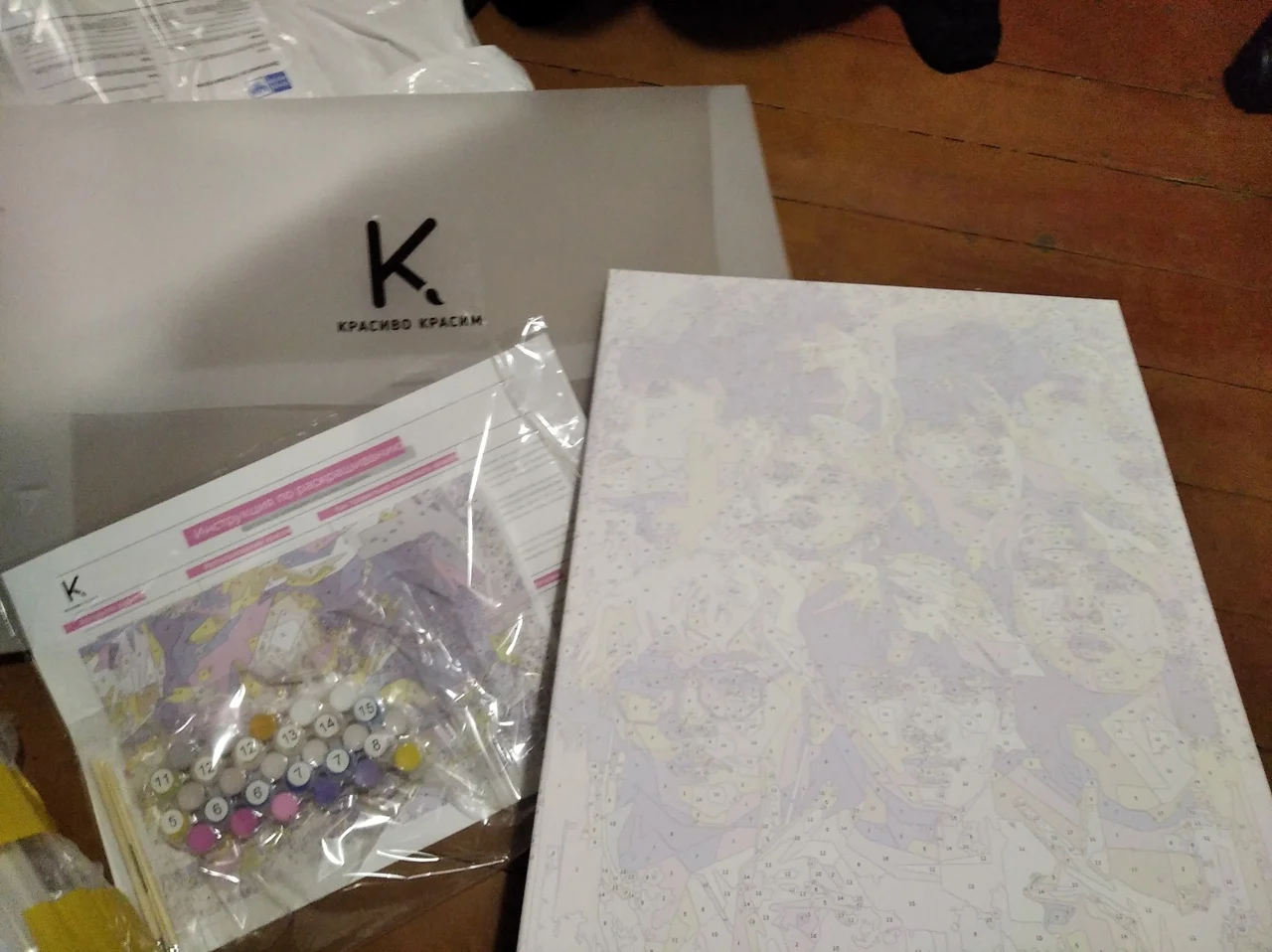 Классная картина, мне очень понравилась, красок запасом, 5 кисточек и положили наклейки, правда не было чехла но для меня это не проблема. Посылка пришла за 10 дней, продавец очень быстро отправил товар.