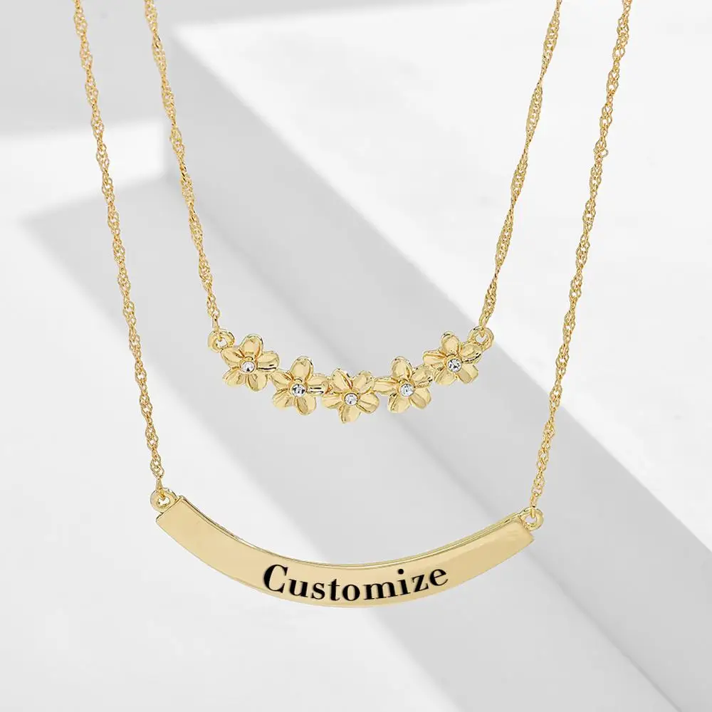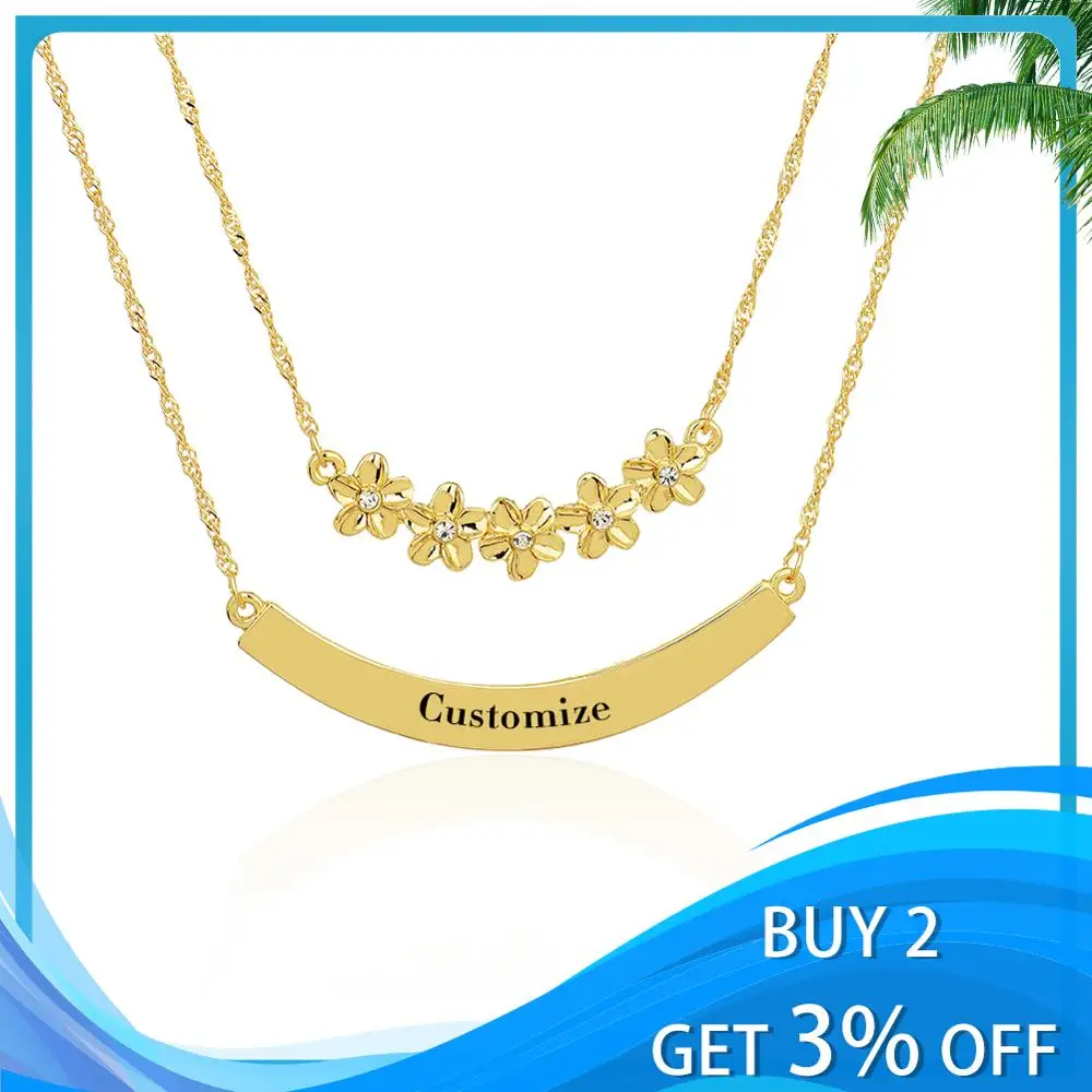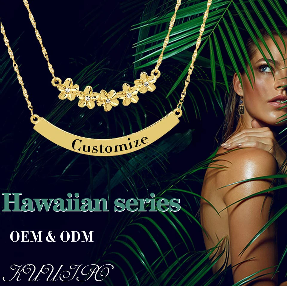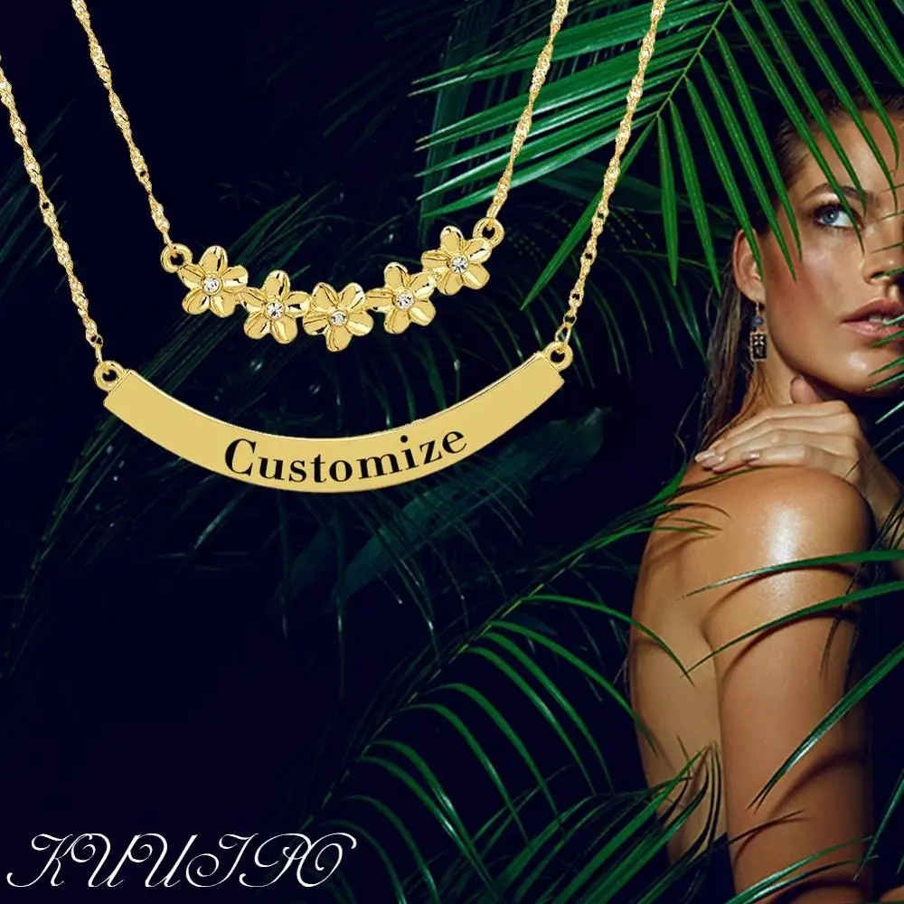 Многослойные ожерелья Cring Coco с именем на заказ для женщин, персонализированные ювелирные изделия с Гавайскими мотивами, золотое ожерелье-чокер с цветком плюмерии и улыбкой