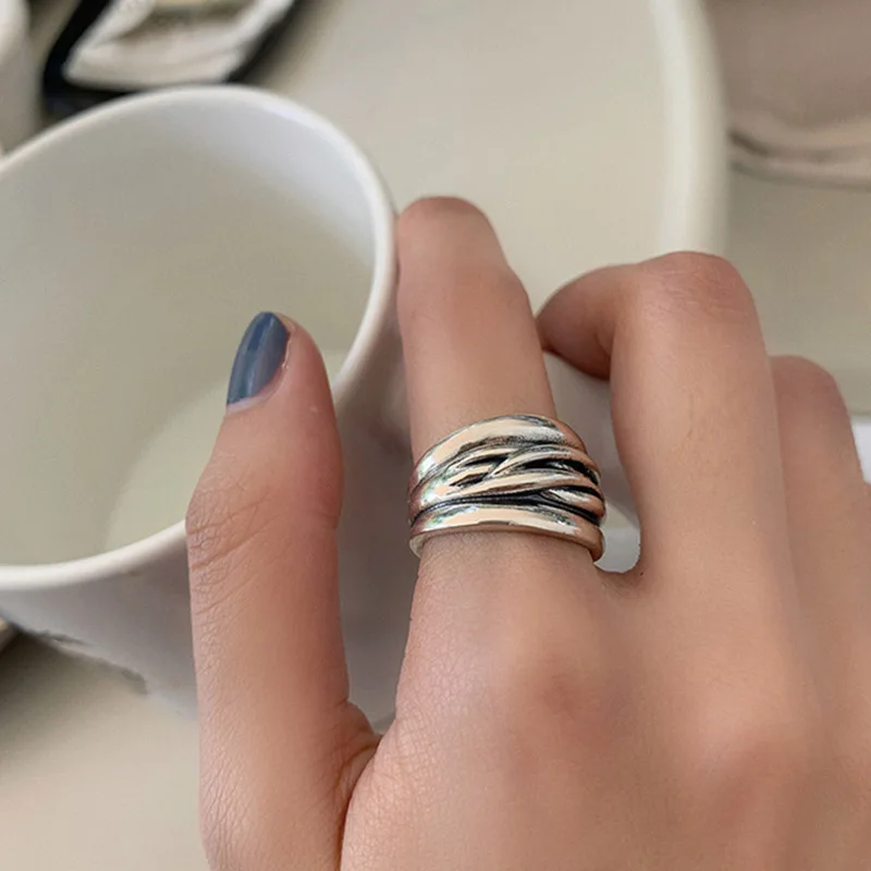 Женское Винтажное кольцо Foxanry, кольцо из стерлингового серебра 925 пробы с простой цепочкой, многослойное геометрическое плетение, вечерние ювелирные изделия, подарки для женщин