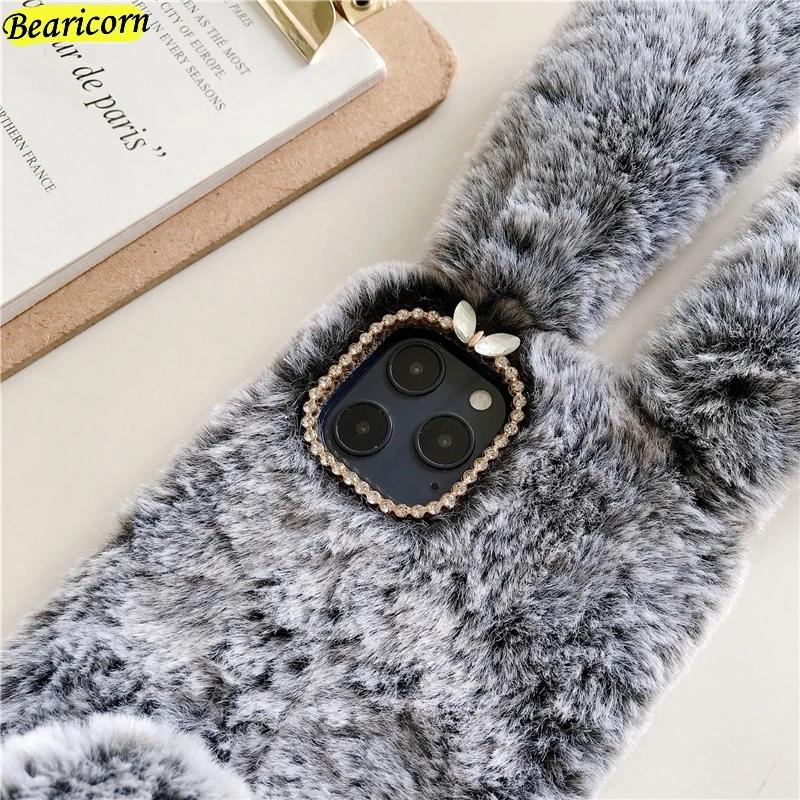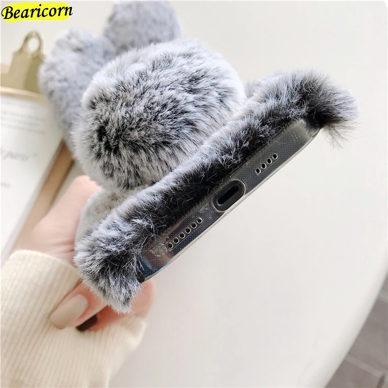 ХарактеристикиSoft warn fluffy Rabbit Bunny Hair Fur Furry Plush Phone Case