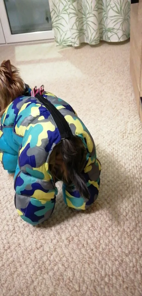 Ужасно неудобный пуховик, надевать крайне не удобно на собаку