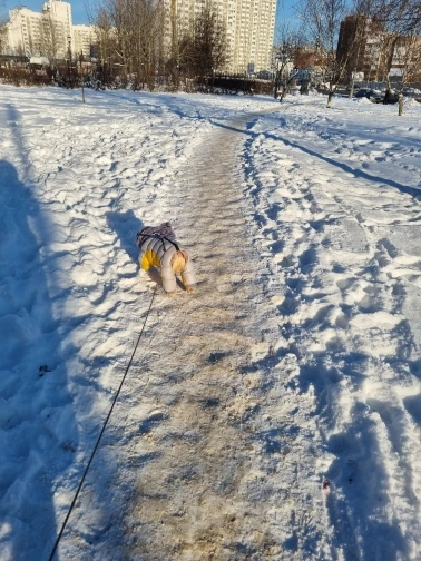Прислали быстро в постомат 5-ки, в срок как было написано! Вот это сервис! С размером угадали на нашу француженку 11кг. Выглядит в ней песель ну очень прикольно! Как маленький человечек! У нас девочка сзади писать не мешает, какать неудобно из за дутости комбеза, но можно. Главное в сильные морозы песелю тепло!