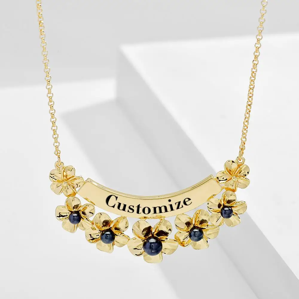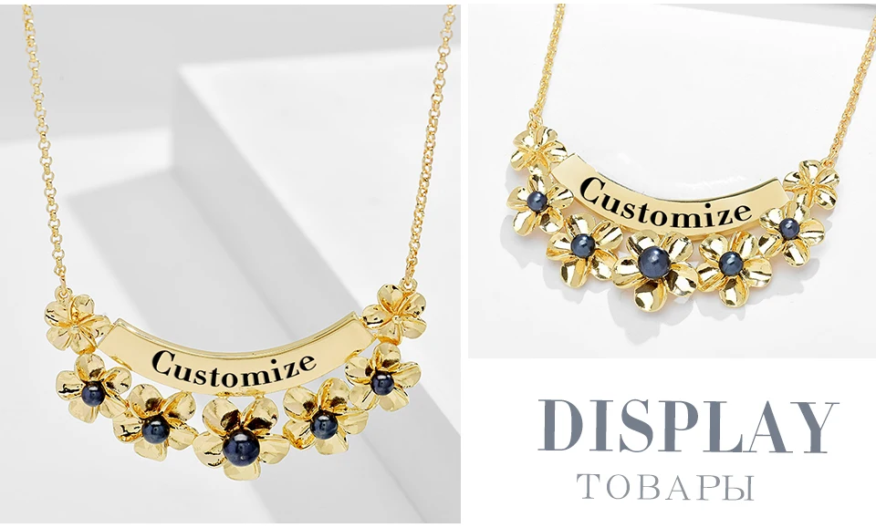 Модное ожерелье с цветами, золотистая цепочка с именем под заказ, ч...
