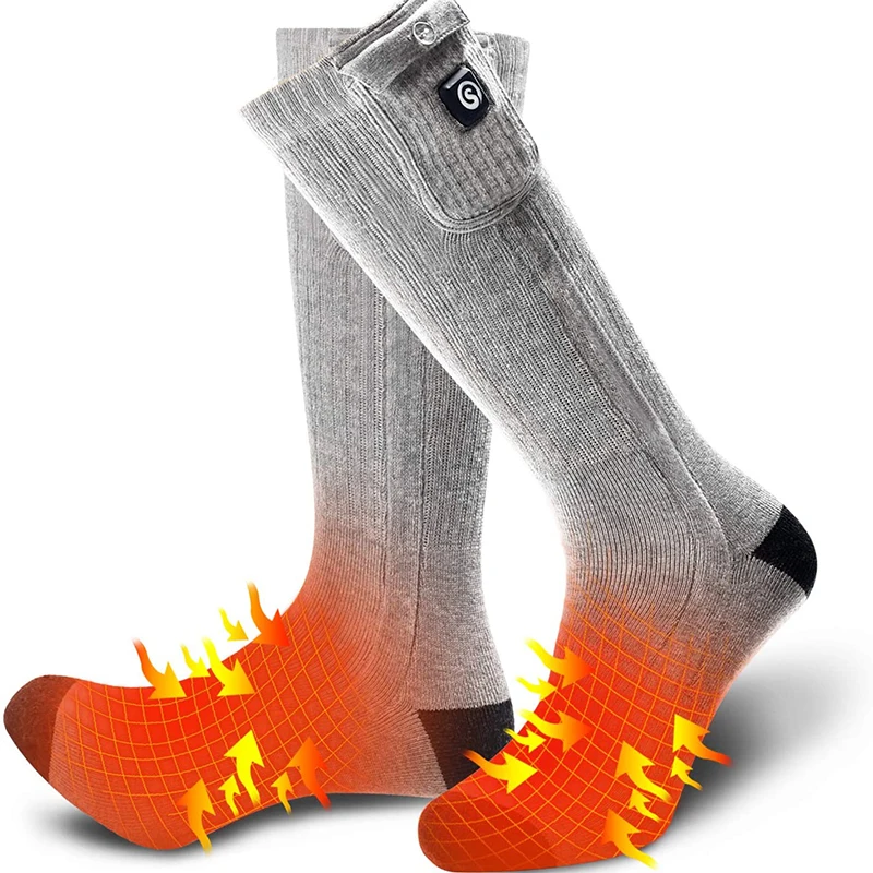 【Мягкие и дышащие теплые носки с очень удобными, толстыми и хорошо проложенными. Абсорбирующий, дышащий, быстросохнущий, утолщенный, использует Ультратонкий Электрический нагревательный модуль. Мягкая мягкая усиленная пятка и носок аккуратная прострочка и утопленный нагревательный элемент помогают сфокусировать тепло на носке, чтобы ваши ноги были в тепле от холодной погоды.