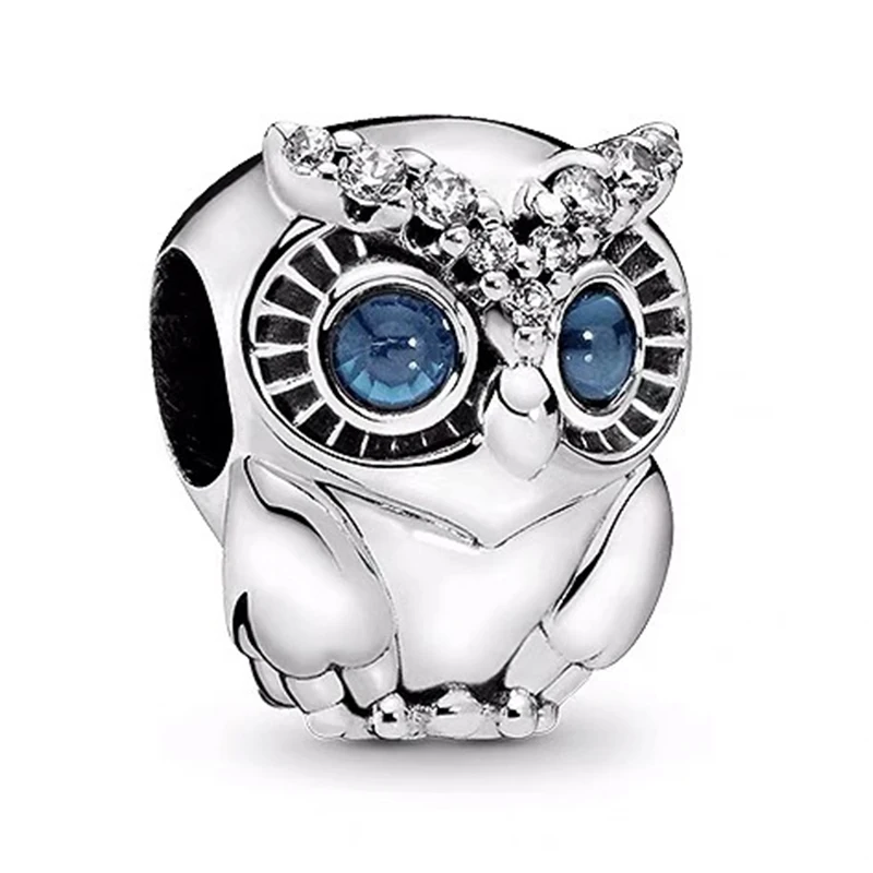 Голубые глаза, Сова, бусины для изготовления ювелирных изделий, подходят к оригинальному пану, амулеты, браслет для женщин, прекрасные бусины, кристалл, птица, кулон, сделай сам, браслет для девочек