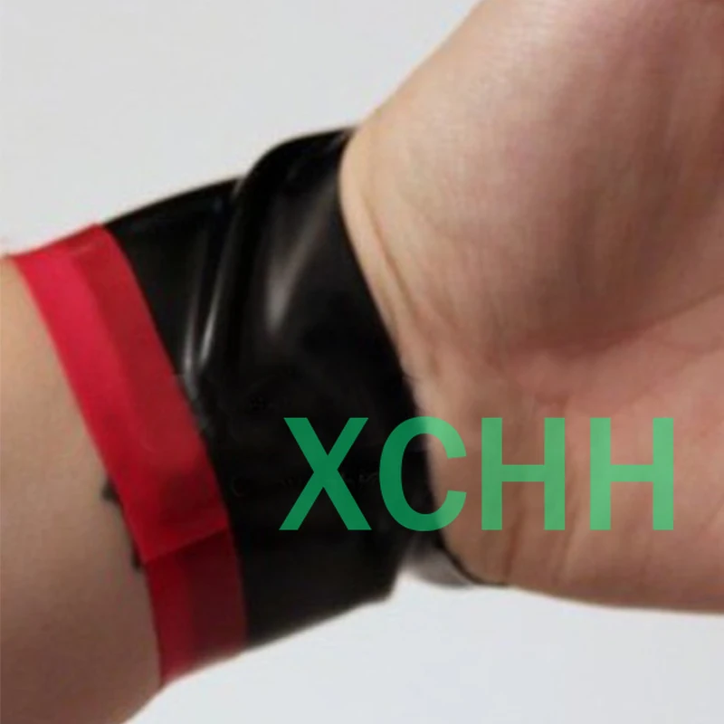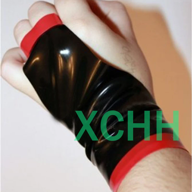 Сексуальный дизайн Унисекс латекс экзотический нижнее белье черный с красной отделкой без пальцев Короткие наручные перчатки клуб cekc зентай фетиш