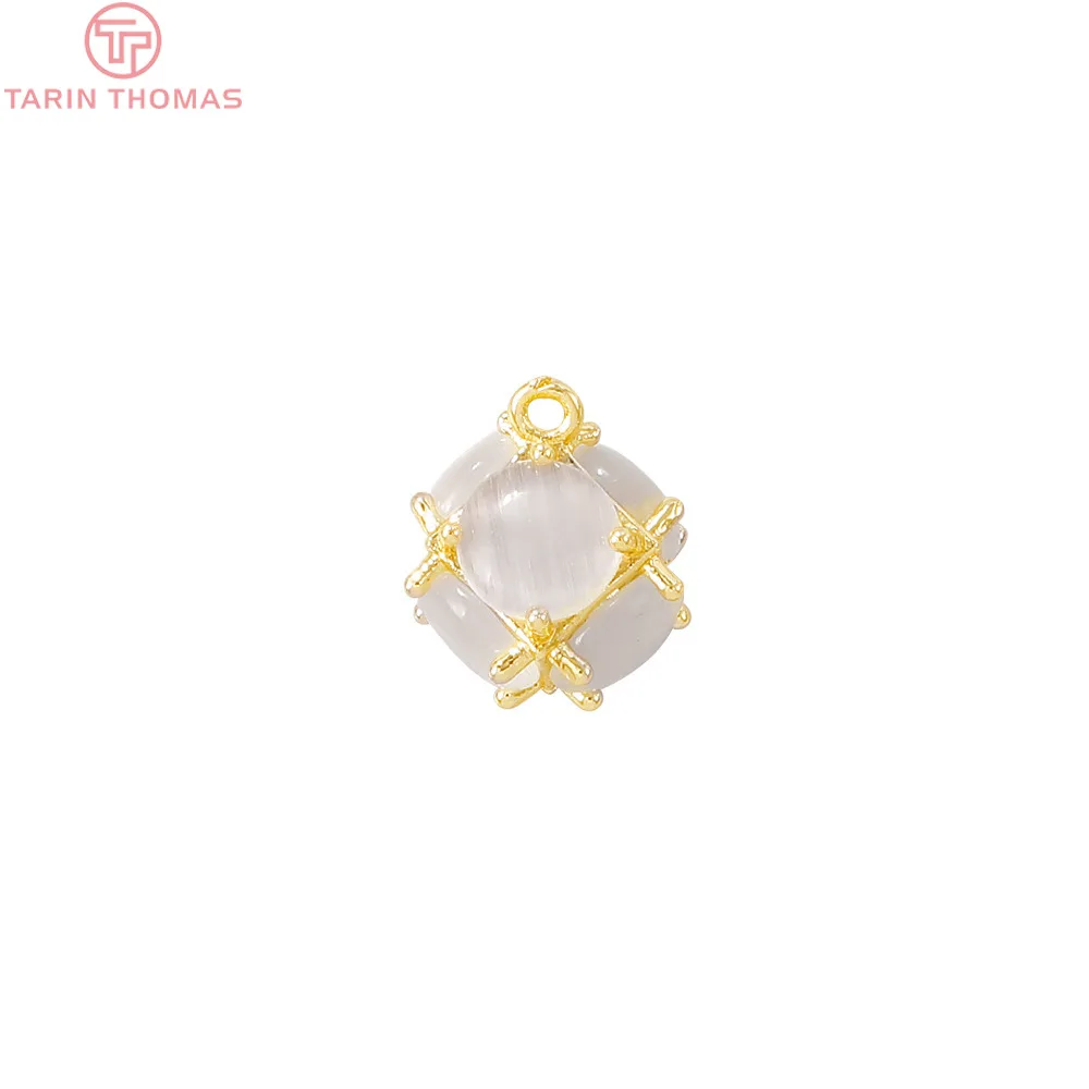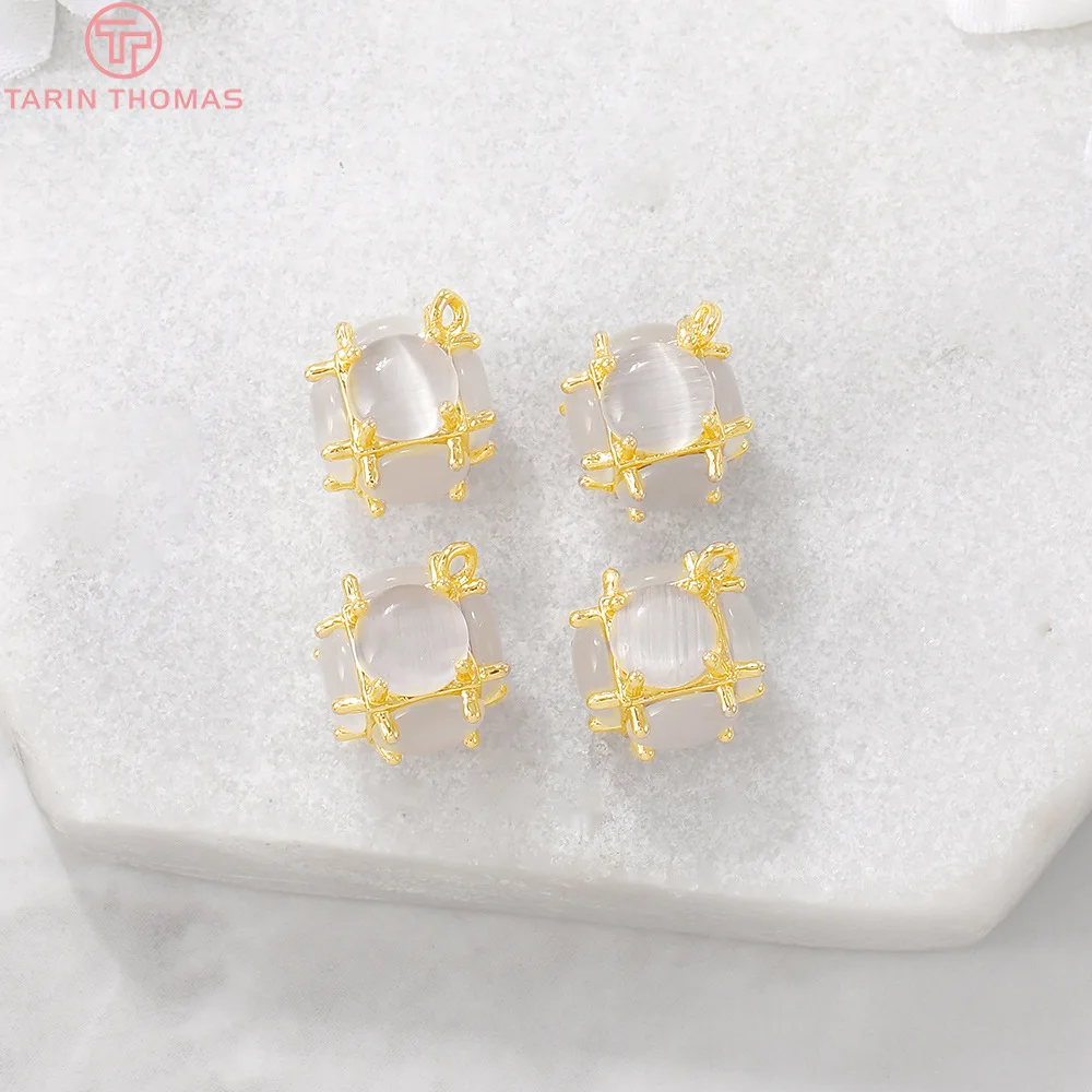 (1365)4 шт. 7x7 мм позолоченные латунные Квадратные бусины с опалом 24 карата Подвески высокого качества Diy ювелирные аксессуары