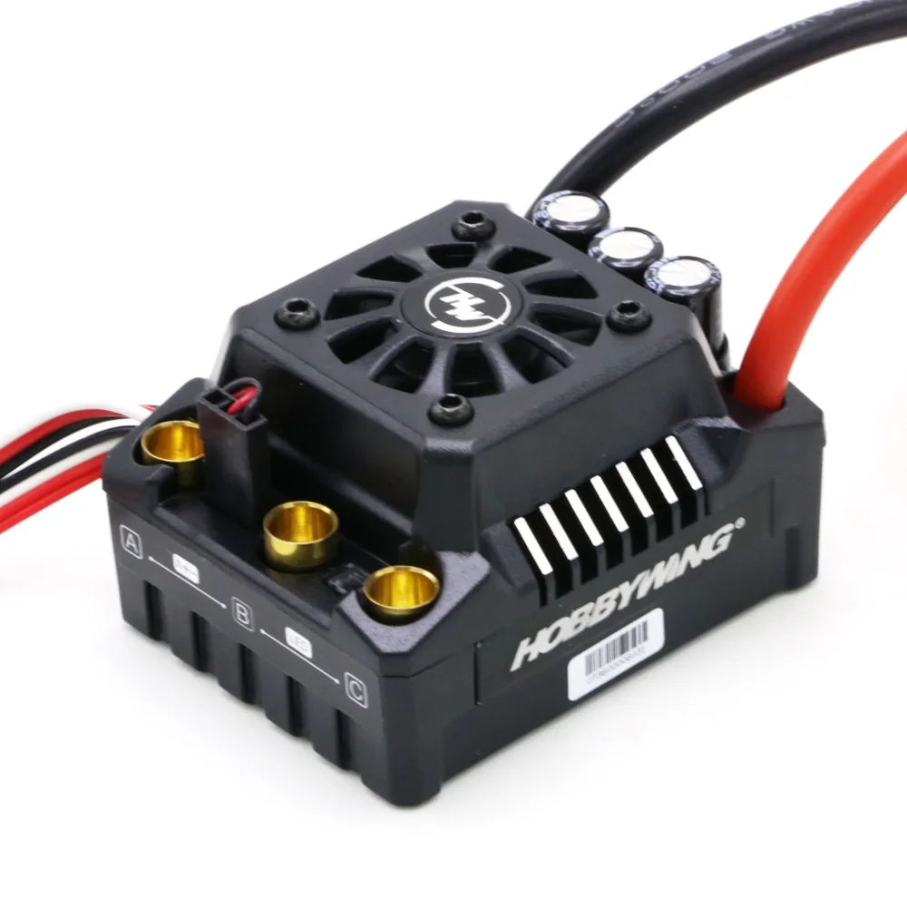 Это водонепроницаемый бесщеточный ESC Hobbywing EZRun Max8 V3 с установленными Т-образными разъемами.