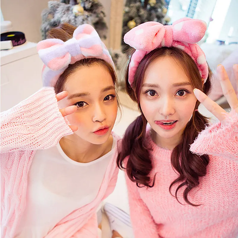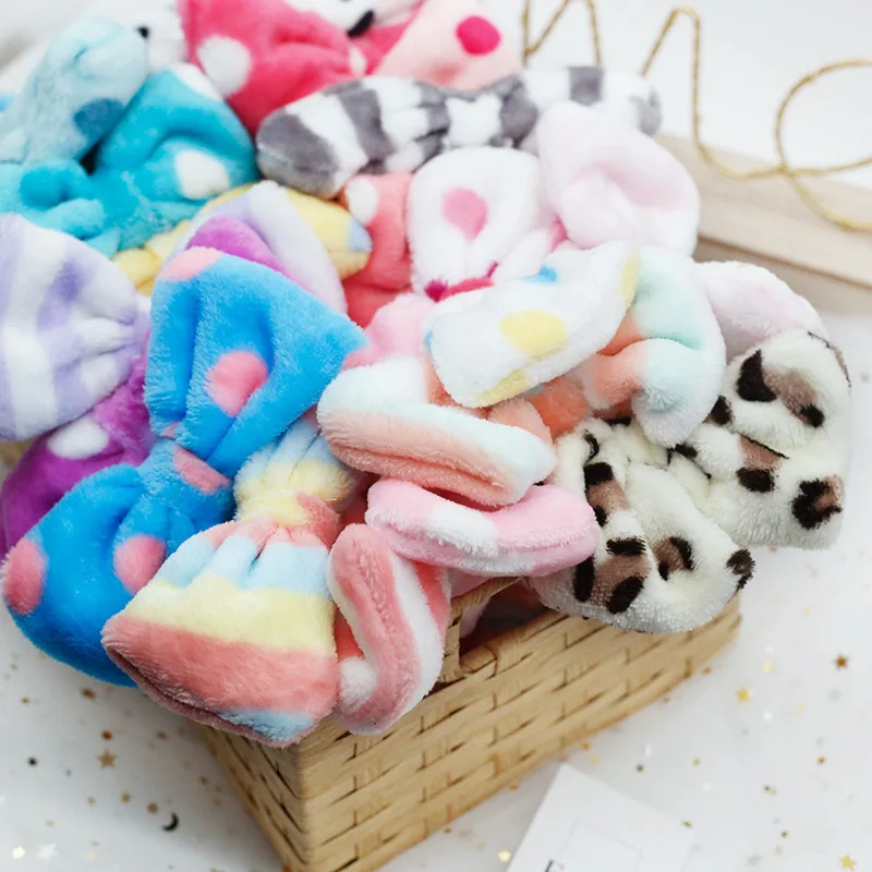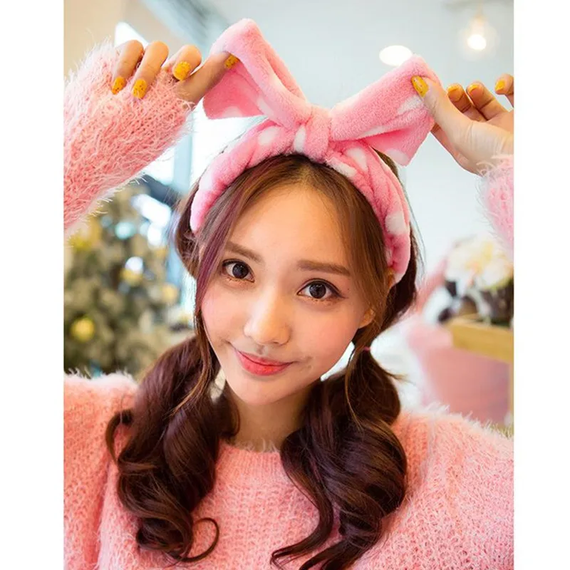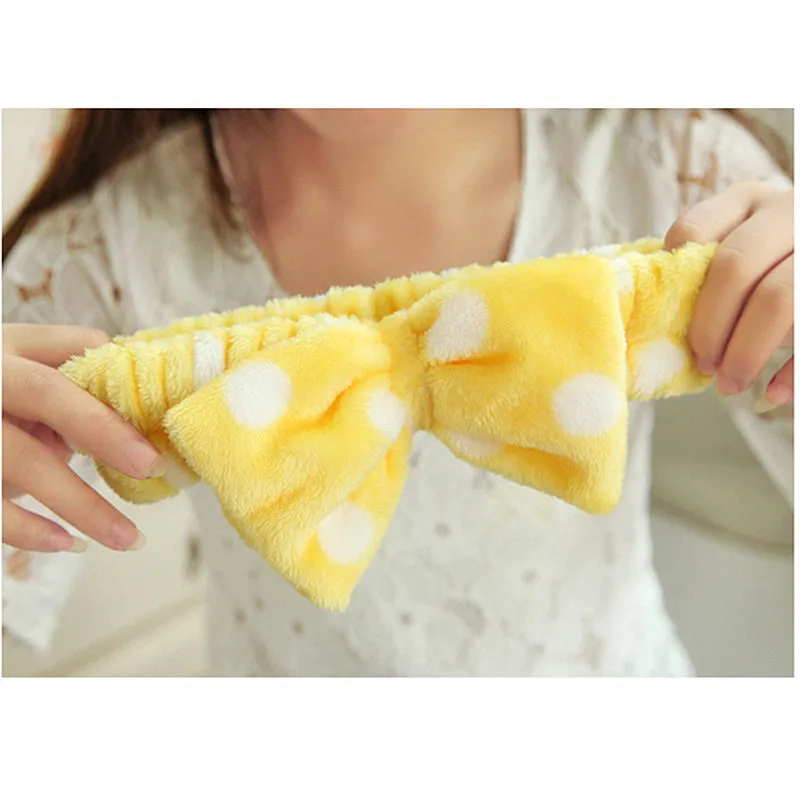 Повязка на голову женская в горошек, коралловый флисовый бандаж для мытья лица, модный аксессуар для волос с узлом, повязка на голову