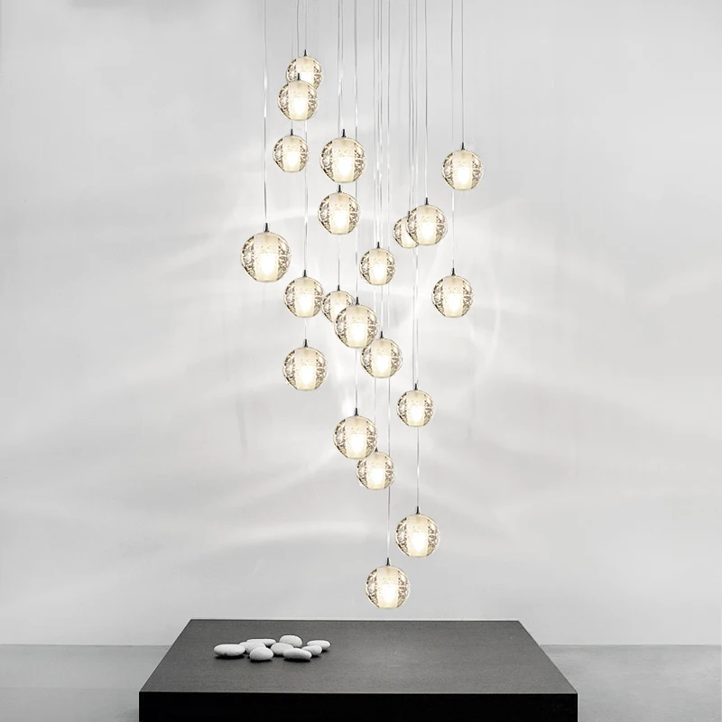 Современная люстра в стиле лофт, длинные хрустальные лампы с шариками, освещение для кухни, виллы, гостиной, лестницы