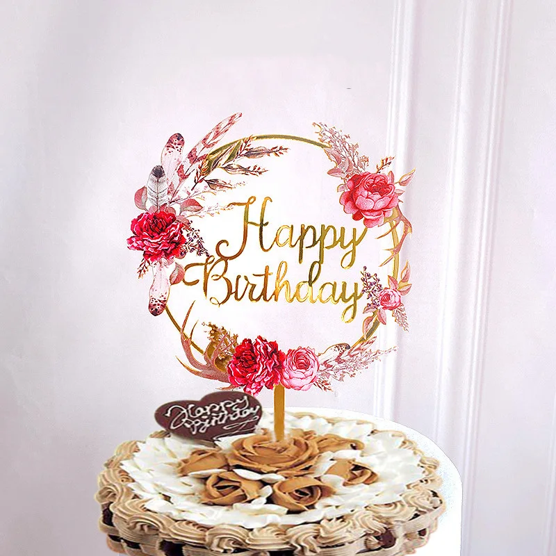 Акриловый Топпер для торта на день рождения, розовое золото, десерт...