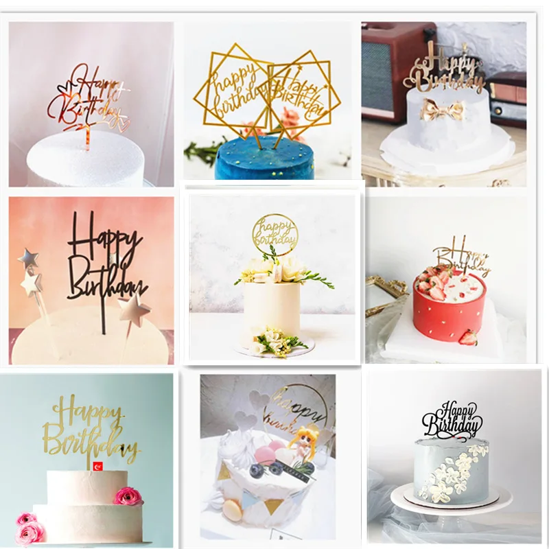 36 стили Happy топперы для торта на день рождения золотистое акрило...