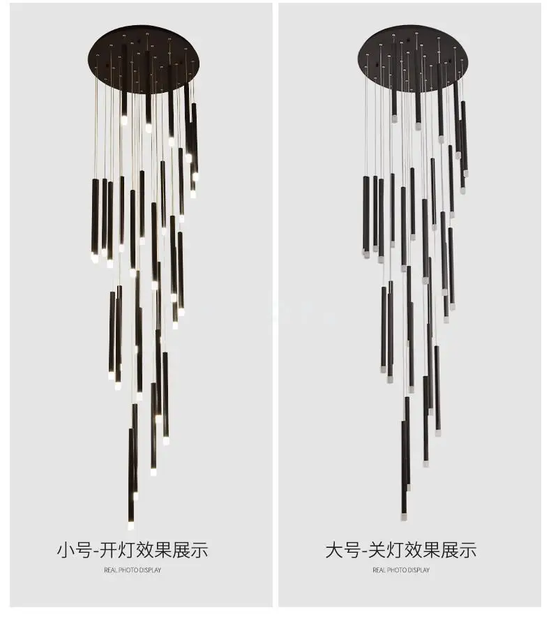 Потолочная светодиодный стра, светодиодная простая дуплексная винтовая лестница, светильник для зала, черногозолотого цвета, украшение для гостиной