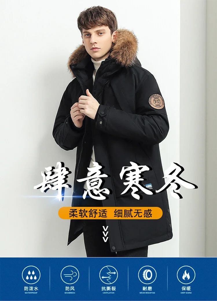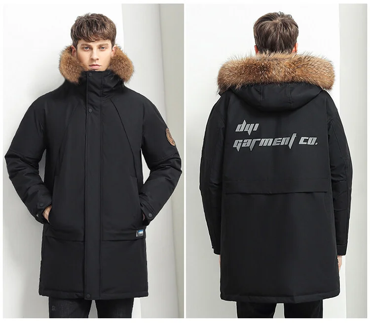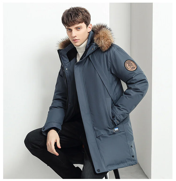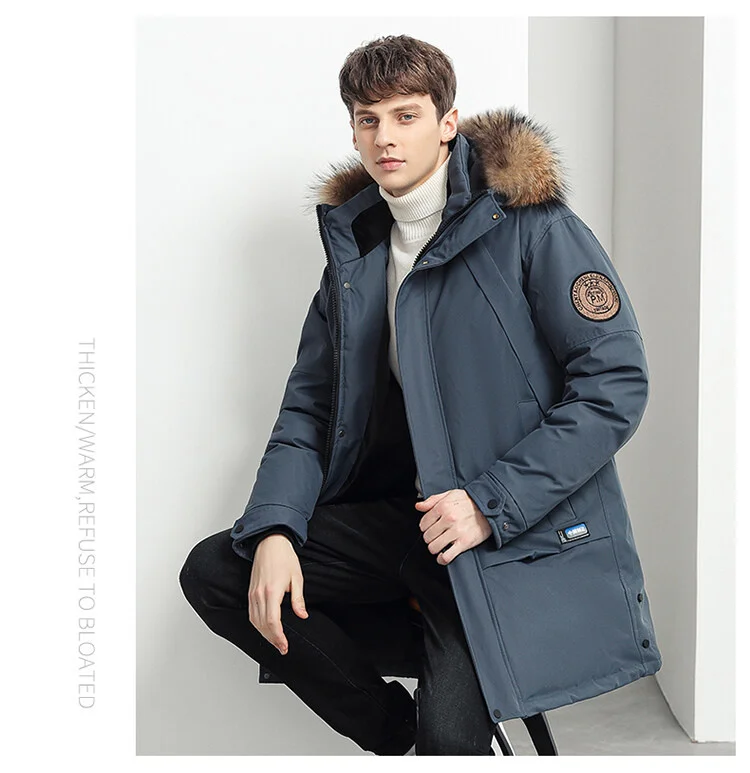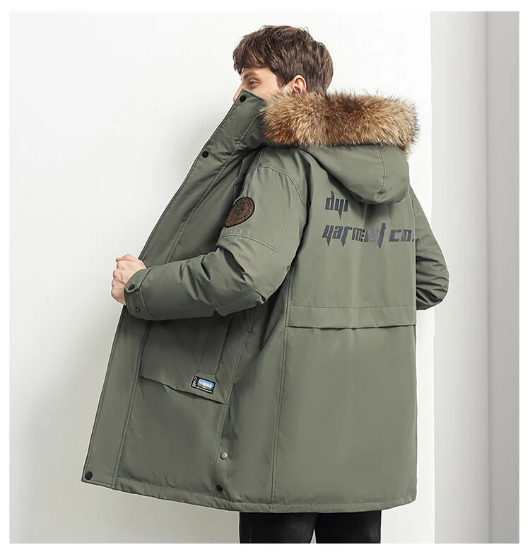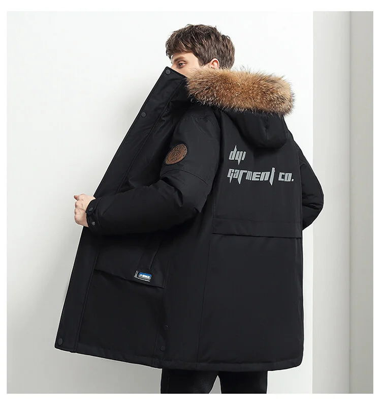 Мужской пуховик с большим настоящим воротником, теплая Повседневная...