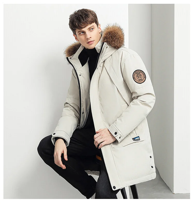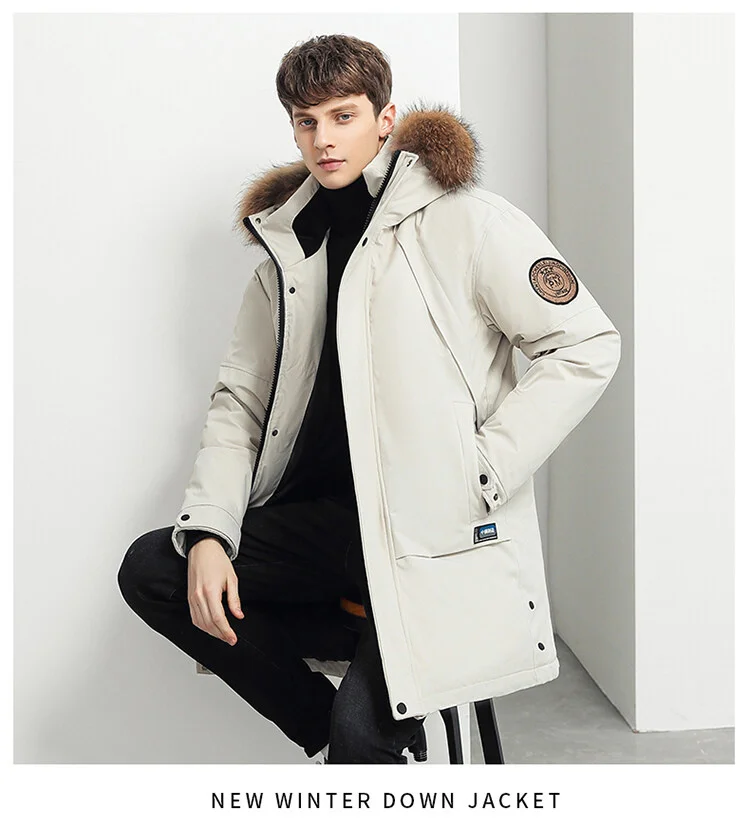 Новое поступление, зимнее теплое пальто ANSZKTN, белая Водонепроницаемая Стеганая куртка с капюшоном, Мужская одежда, зимнее длинное пальто, сохраняет тепло
