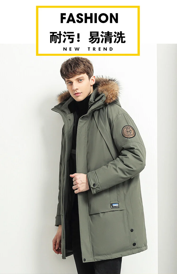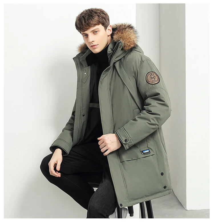 Мужская длинная куртка на утином пуху, теплая парка с капюшоном, По...