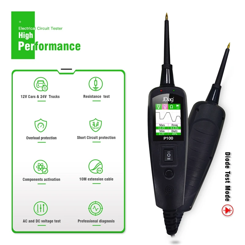 JDiag автомобильный силовой тест силовой зонд Электрический контурный тест er автомобильный диагностический инструмент для автомобилей и грузовиков P100