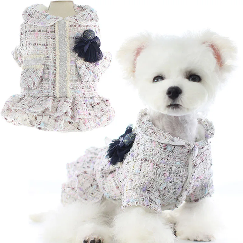 Платье-пальто принцессы с собачкой; Зимняя утепленная одежда для домашних животных; Воротник с лацканами; Цветочный декор; Женская Душистая юбка-пачка; Куртка для маленьких собак; Teedy