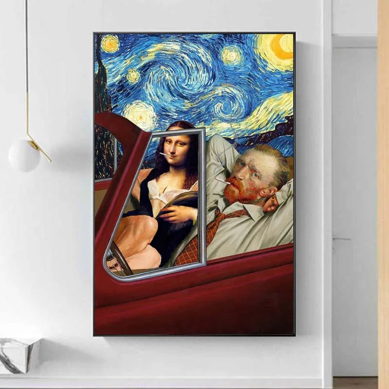 Забавное Искусство Ван Гога и Мона Лиза постеры для вождения абстра...