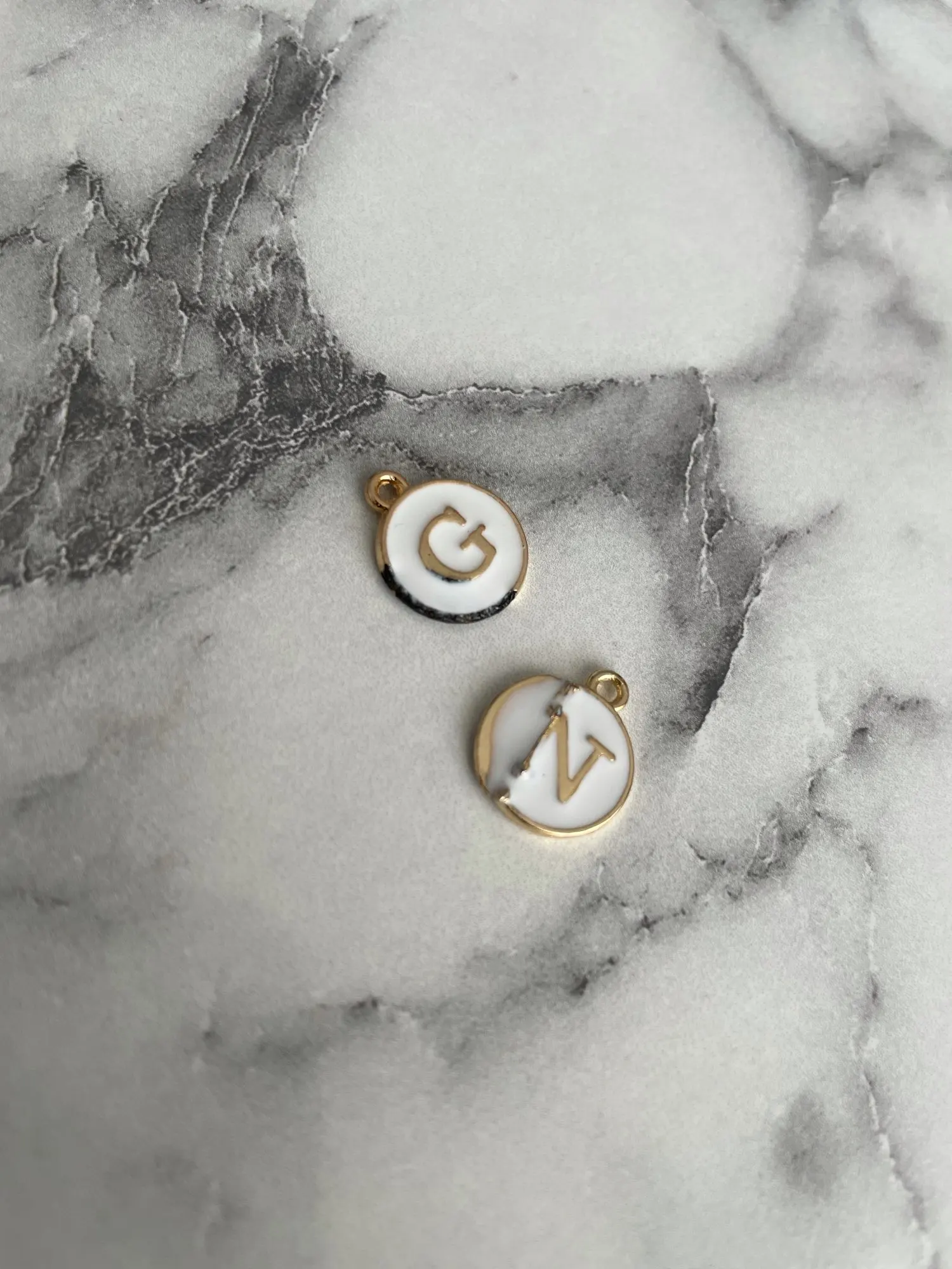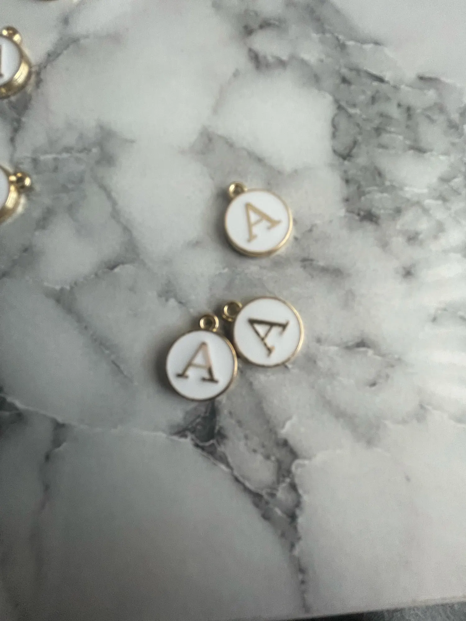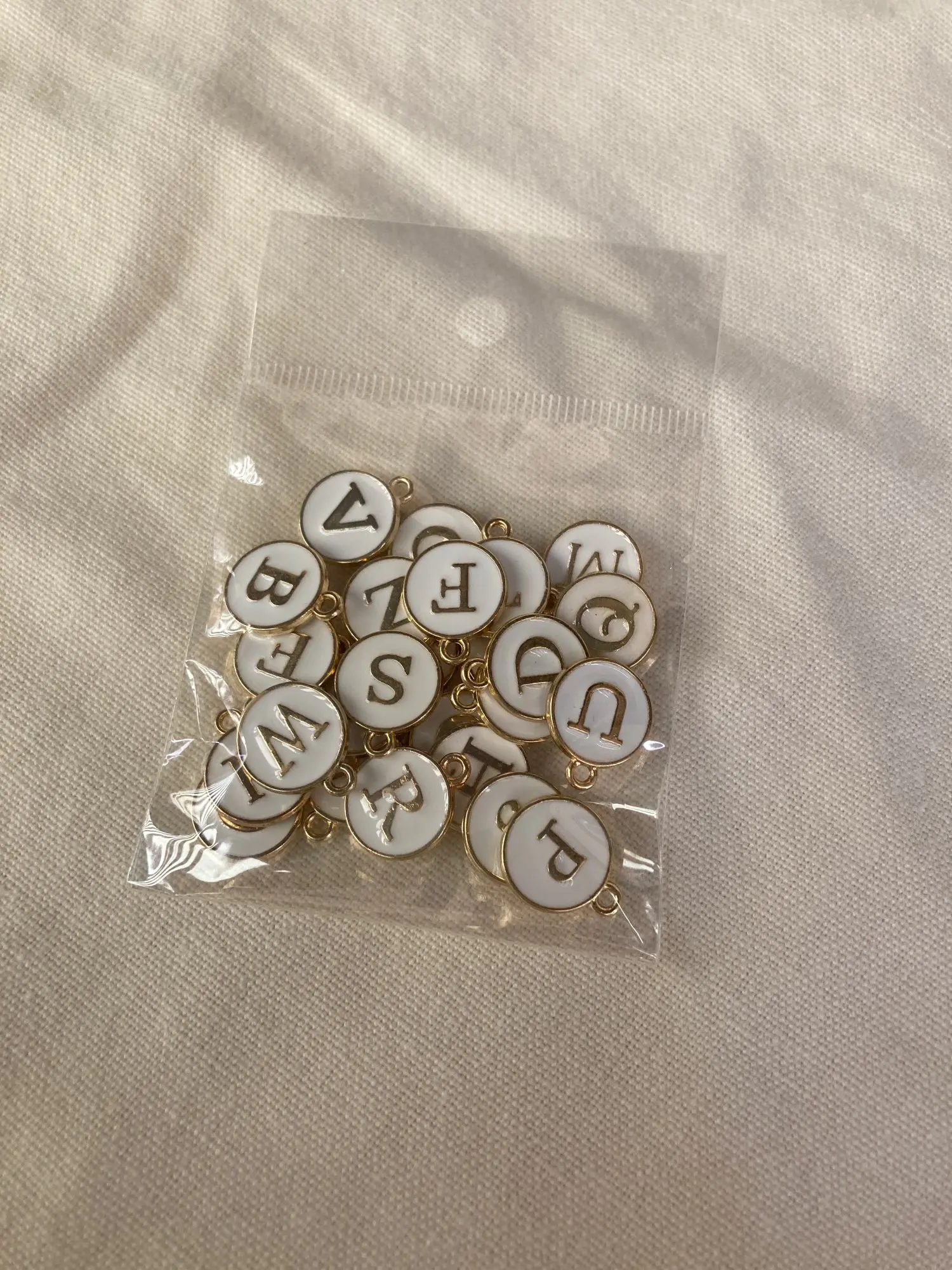 10 шт.26 шт. двухсторонние эмалевые Подвески в виде букв алфавита KC Золотой цвет белая эмаль 12*15 мм Подвески для изготовления украшений вручную рукоделия