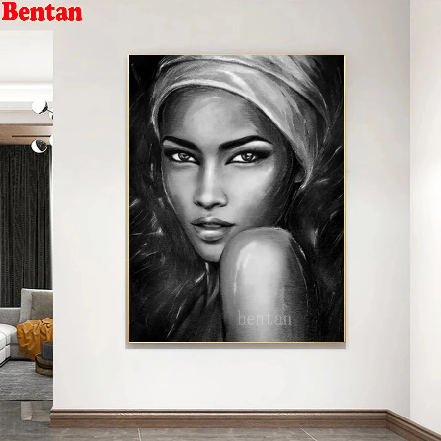 Картина из квадратных страз, черно-белая картина с изображением Африканской женщины, Алмазная мозаика, вышивка крестиком, алмазная вышивка, Новогодний подарок
