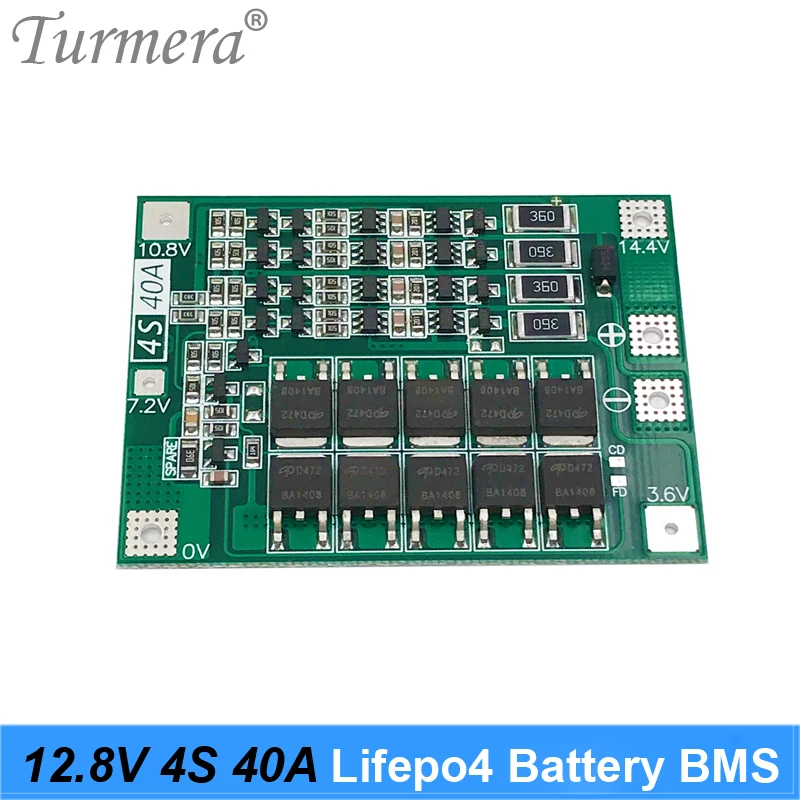 Аккумулятор Turmera 4S, 40A, 12,8 В, 14,4, 32650, 32700, Lifepo4, сбалансированный BMS для электролодки, бесперебойный источник питания, 12 В, автомобильный аккумулятор
