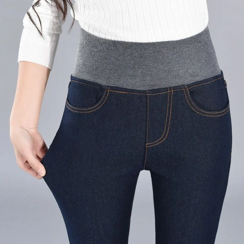Горячая Распродажа, женские зимние толстые тепловые флисовые уличные джинсовые брюки, одежда для женщин, новые женские флисовые брюки с высокой талией