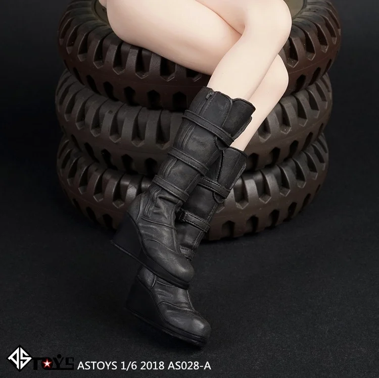 Черные боевые ботинки в масштабе 1:6 AS028, обувь для 12-дюймовых съемных ног, Женская экшн-фигурка, игрушка для тела