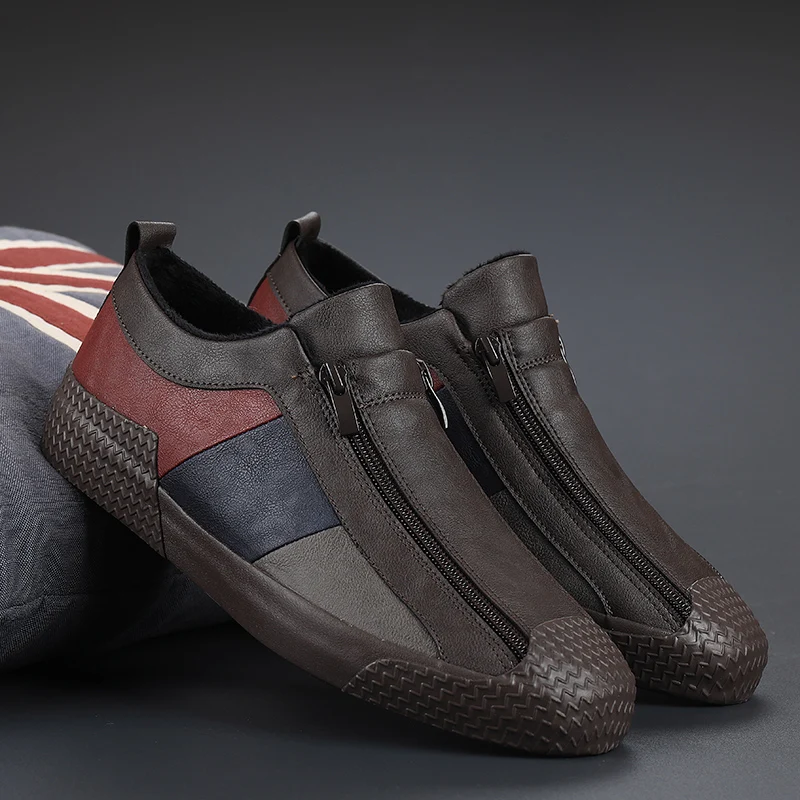 Зимние теплые кроссовки, модная мужская повседневная обувь, кожаные кроссовки, мужская обувь на плоской подошве, новый бренд, повседневная обувь