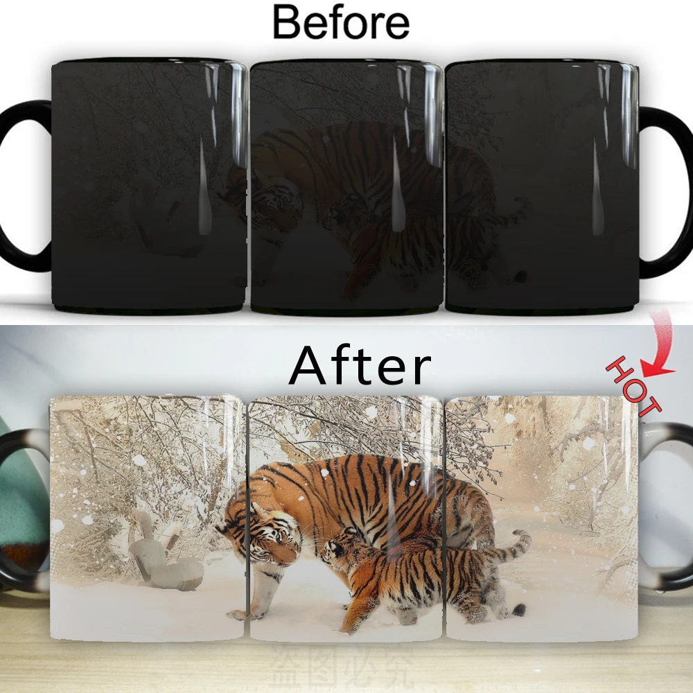Круглая кружка с тигром, 11 унций, меняющая цвет, кофейная кружка, ...