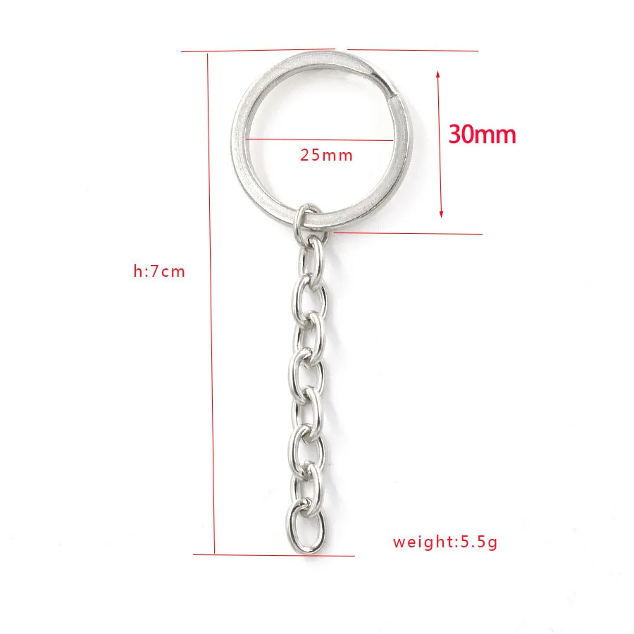 100% брелок из нержавеющей стали 30 мм металлическое разделенное кольцо с короткой цепочкой брелок DIY цепочки, аксессуары Оптовая продажа 20 шт.