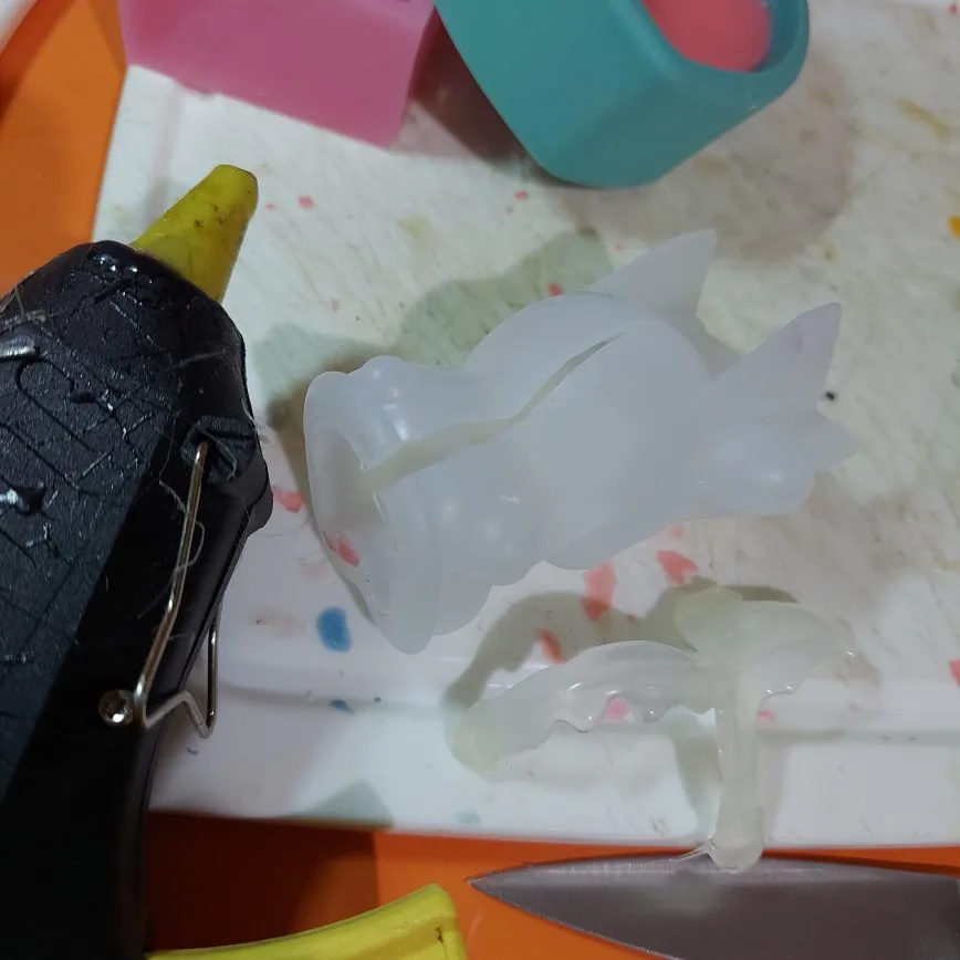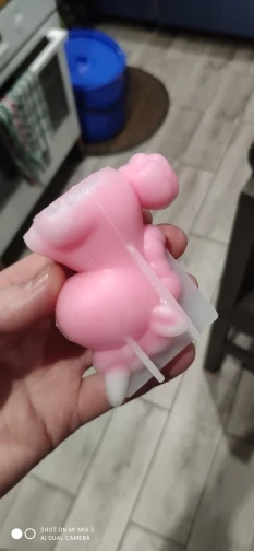 форма красивая, маленькая. доставать мыло без повреждения не получилось ( рога оторвались, и ногтями поцарапала чуток) потому разрезала её сзади и склеила клеевым пистолетом (скотчем протекало) , залила мыло, сняла клей, все вытащила. надо подправить шовчик на мыле. вес мыла 48 грамм