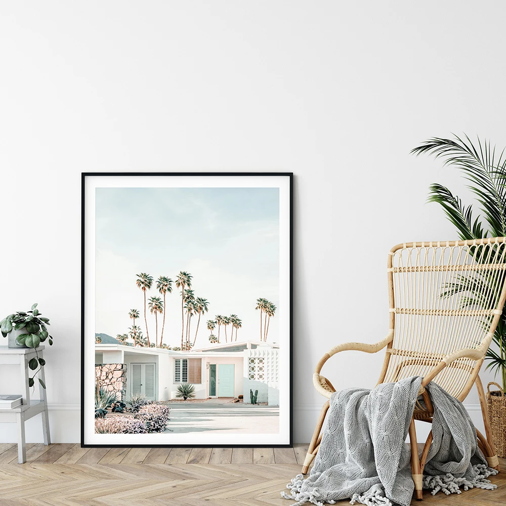 Кокосовая пальма здание пейзаж настенная живопись холст скандинавские плакаты и принты настенные картинки для гостиной домашний декор
