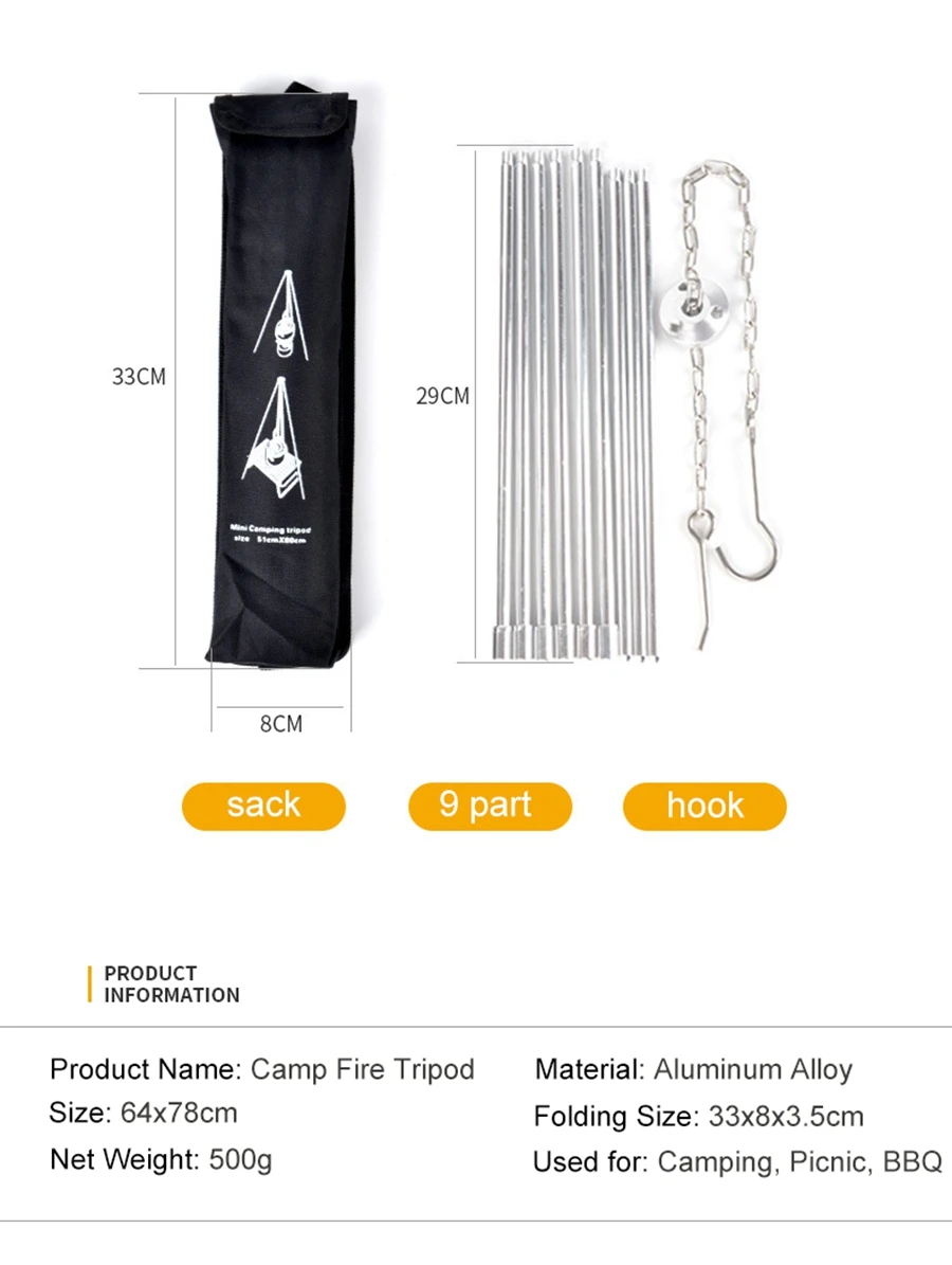 Штатив-Трипод для кемпинга Desert Fox для подвешивания горшка регулируемый гриль штатив-Трипод с сумкой для хранения для кемпинга, пикника, пешего туризма