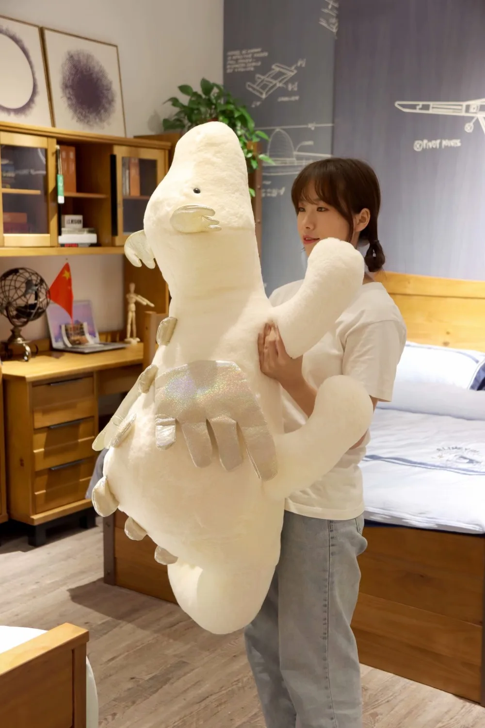 Хит продаж, красивый Huggable белый динозавр, плюшевые игрушки, гиг...