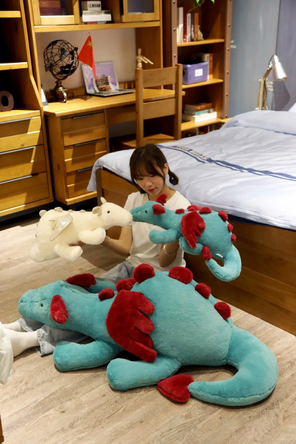 1 шт., летающий дракон плюшевая игрушка Зеленый Белый милый пушисты...