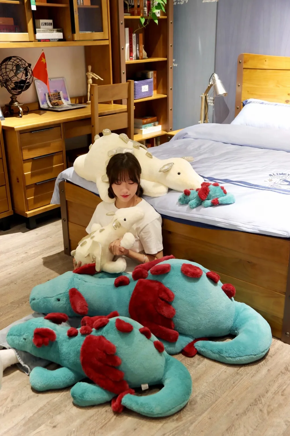 Гигантский Huggable зеленый белый динозавр плюшевые игрушки мягкие ...