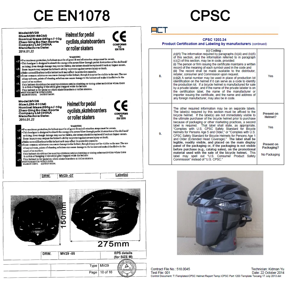 CE EN1078, CPSC:16CFR1203, UKAS ISO9001