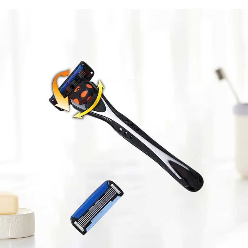1 ручка + 1 лезвие ручной 5-слойный вращающийся бритвенный набор из нержавеющей стали для ухода за лицом