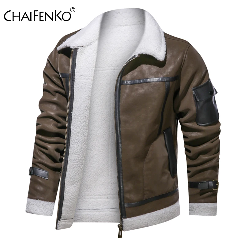 Зимние мужские куртки, пальто, утепленная кожаная куртка, Мужская м...