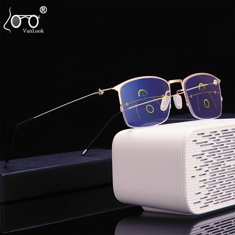 VANLOOK прогрессивные многофокальные очки для чтения для мужчин и женщин, мужские прозрачные Регулируемые очки для зрения, красные + 1,0 1,5 2 2,5 3 3,5