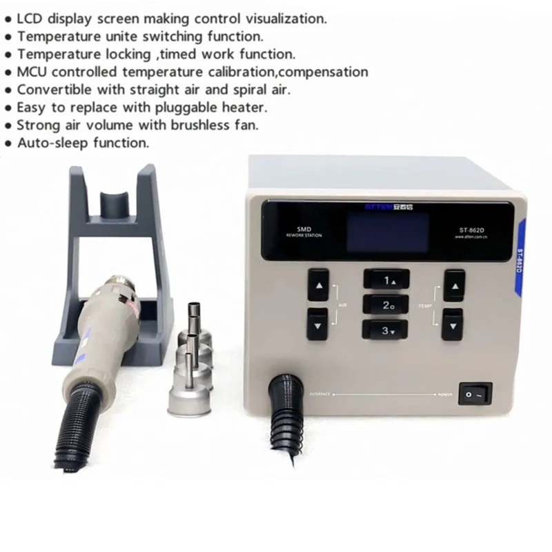 ATTEN ST-862D Бессвинцовая 1000 Вт паяльная станция с горячим воздухом, Интеллектуальная цифровая станция для ремонта чипов PCB