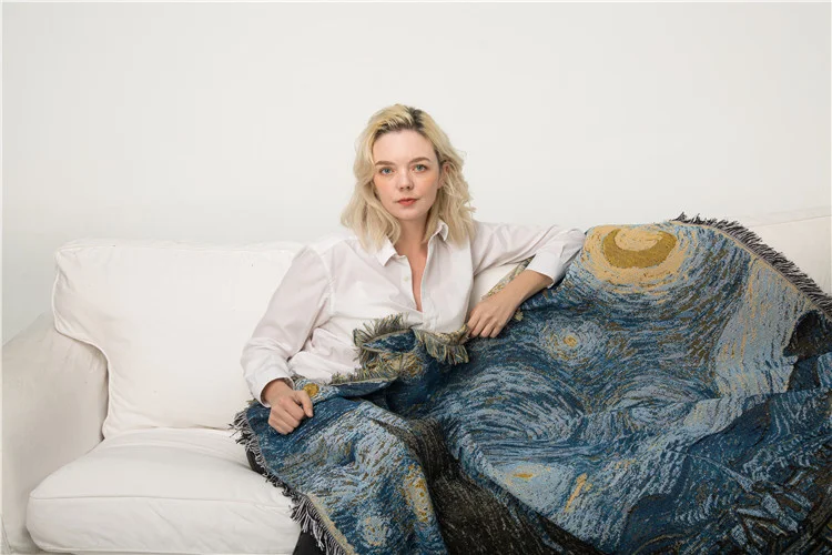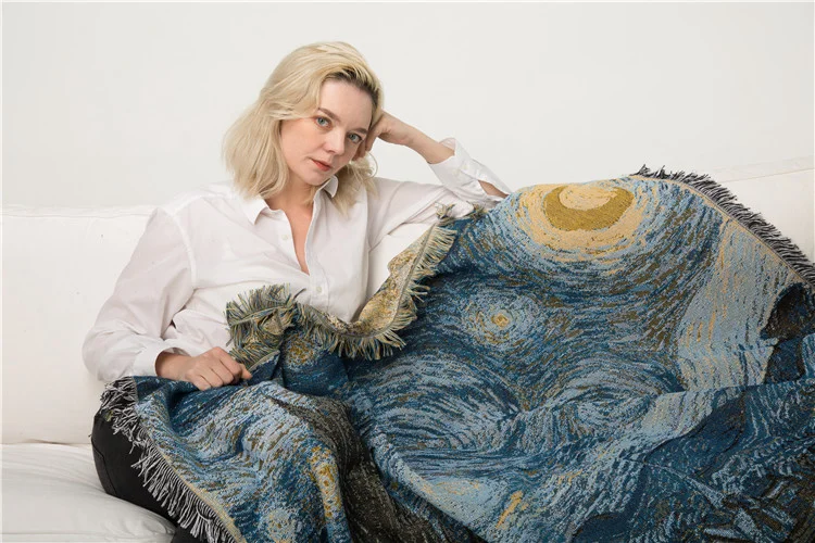 Толстое вязаное Хлопковое одеяло с изображением звездной ночи, гобелен, расшитый звездами покрывало для спальни, подвесное покрывало, домашний декор
